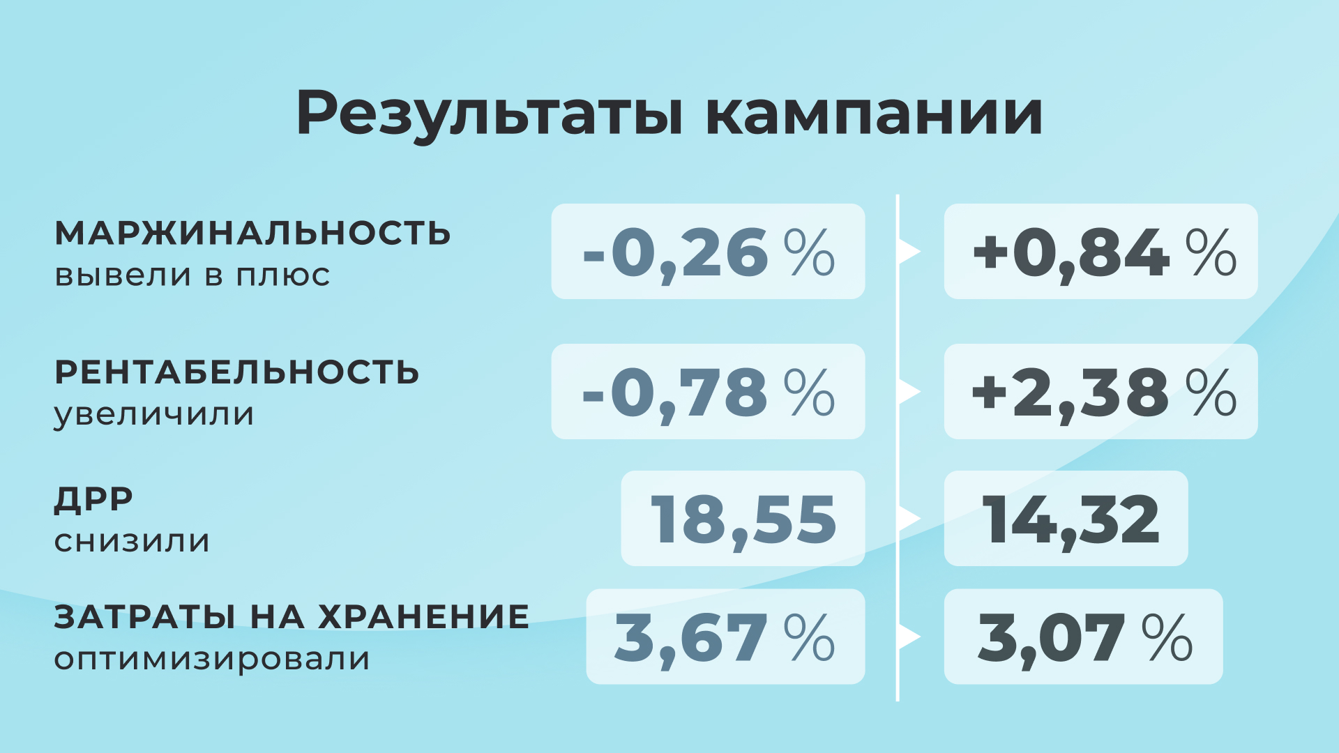 — Увеличили рентабельность с -0,78 до +2,38