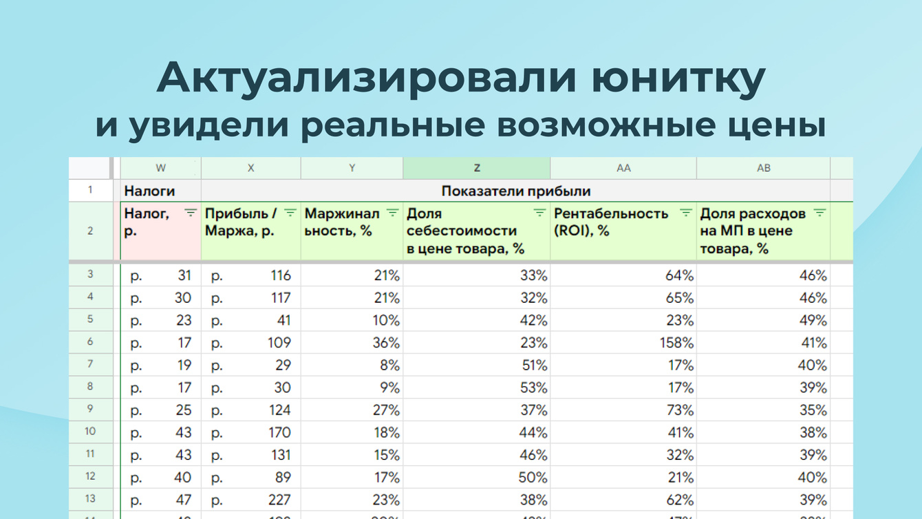 Товары участвовали во всех акциях с крайне низкой ценой. Как решили: сделали юнитку, определили минимальную цену и цену желаемой продажи. Указали в Ozon, увидели, что в текущие акции не проходим, удалили товар из всех акций. Актуализировали юнитку и увидели реальные возможные цены: