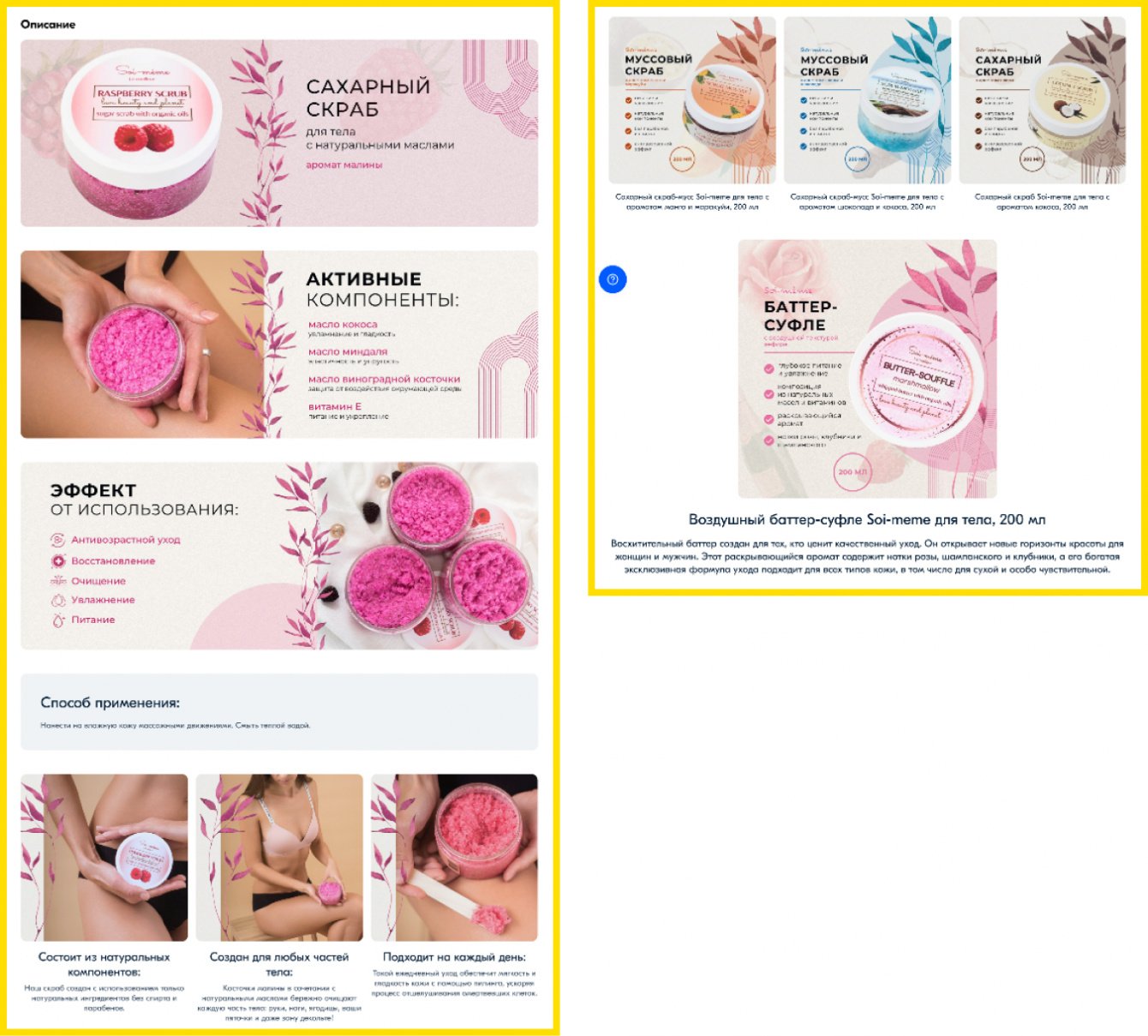 В качестве дополнительной работы согласовали с клиентом создание Rich-контента для товарных карточек, который помогает задержать внимание потенциального покупателя на дополнительных тексто-графических блоках с уникальными особенностями товара.