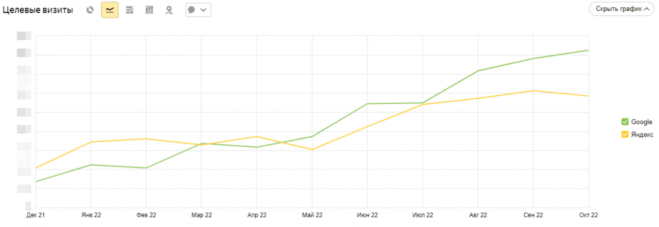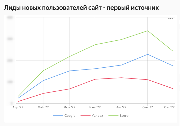 Основной задачей на старте было привлечение лидов. Позже начали уделять внимание охватам и доле рынка, потому что партнеры «Анабара» хотели знать, какое количество аудитории продукт охватывает по сравнению с конкурентами в органической выдаче. Позиции, видимость и трафик не могли показать, какой объем спроса есть на продукт среди лидеров ниши.