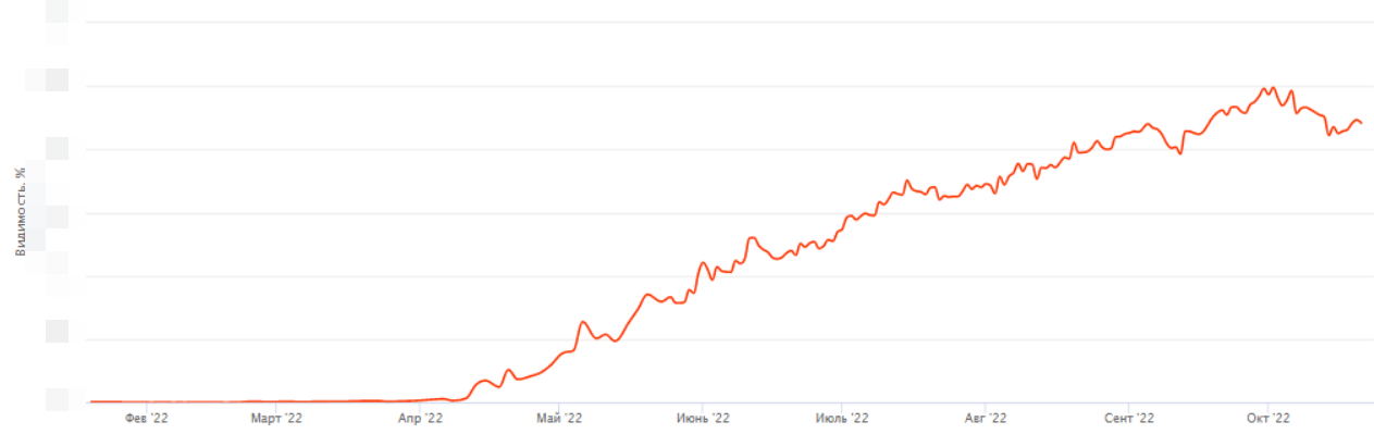 Видимость — насколько сайт виден пользователям в процентах от частоты семантического ядра по каждому запросу и целевые регистрации