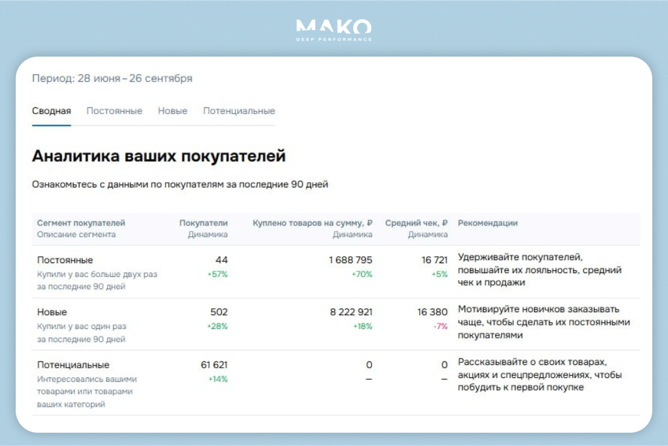 В системе аналитики мы увидели, что почти половина клиентов магазина на Ozon ― новые либо потенциальные.