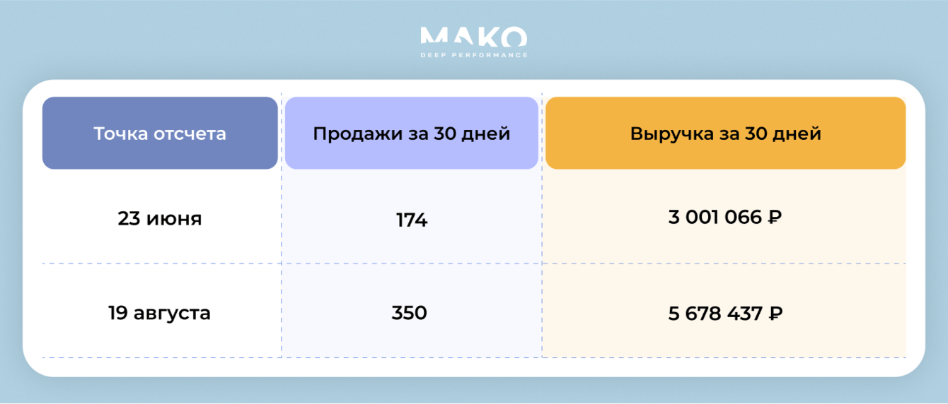 Даже при высокой конкуренции магазину Vesna Jewelry удалось найти резервы для роста. Всего за месяц продажи увеличились почти в 2 раза: