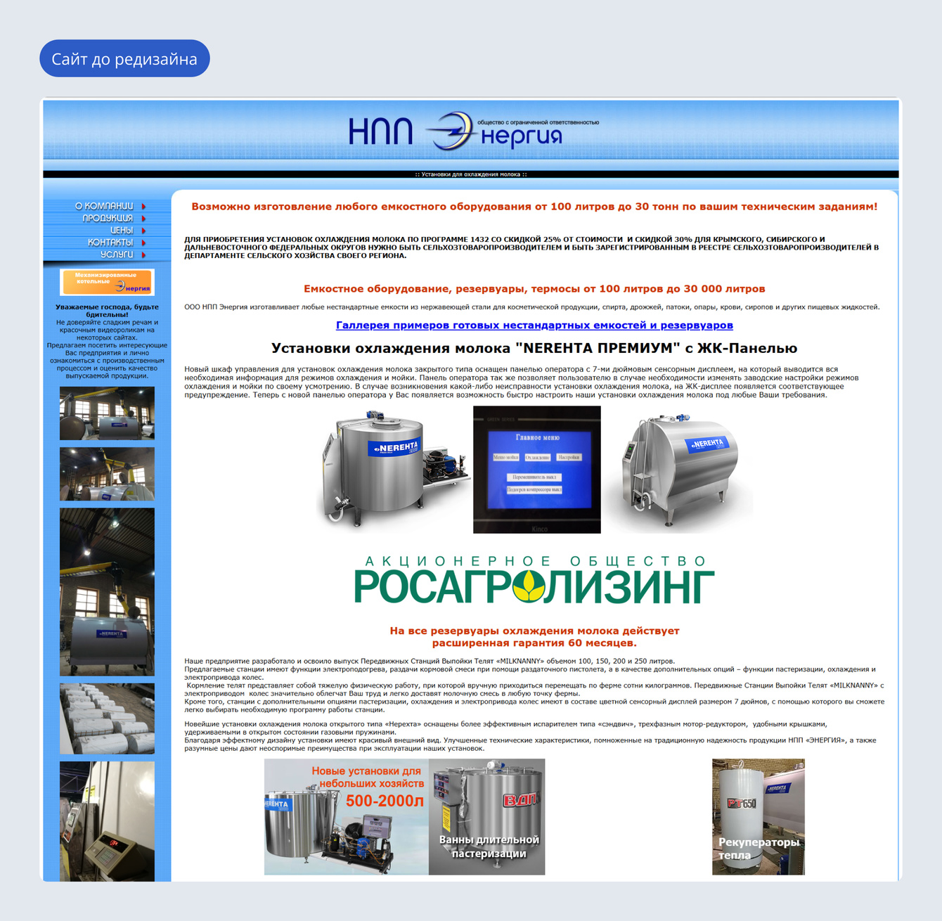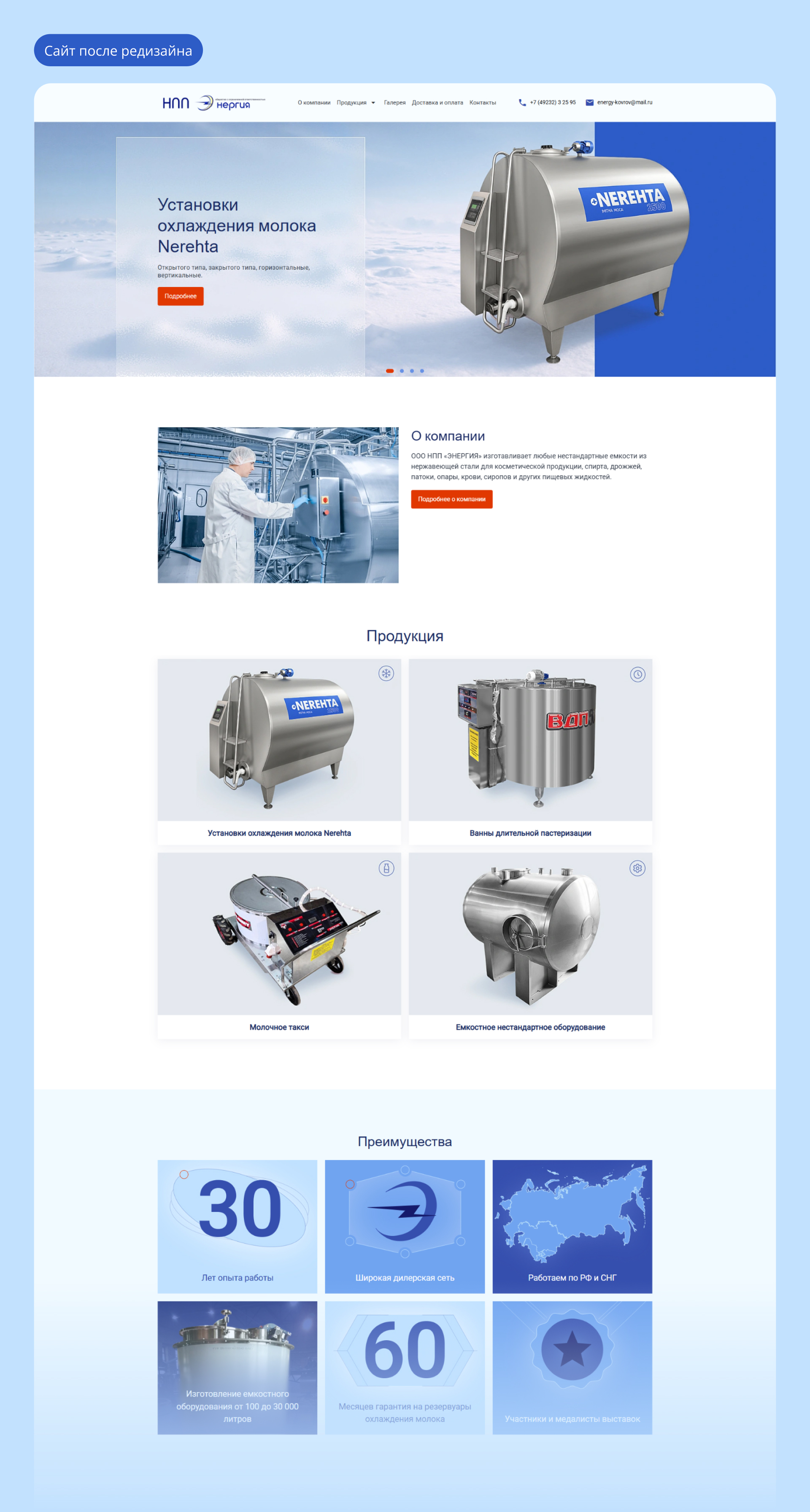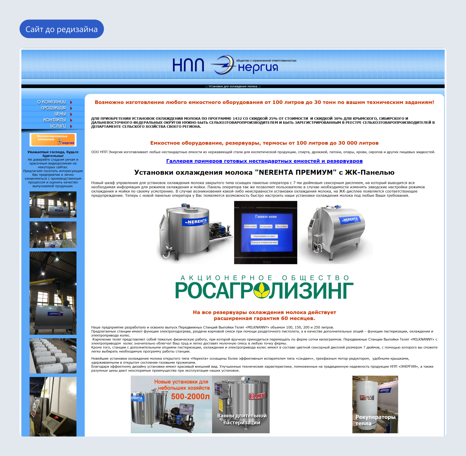 Клиент: научно-производственное предприятие НПП «Энергия», производит нестандартные ёмкости из нержавеющей стали для аграрных, пищевых и химических компаний.
