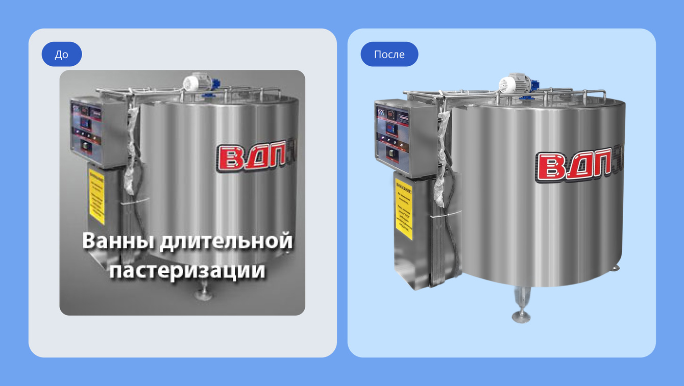 У клиента не было профессионального фотооборудования, а изображения, которые были, – расплывчатые, с грязными фонами и потерей деталей. Мы подняли качество с помощью нейросети Krea AI, а затем вручную доработали важные элементы, например, надписи и маркировку.