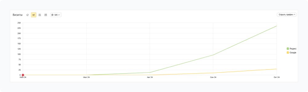 ● За первые 2 месяца после запуска достигли 250+ визитов в месяц.