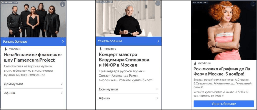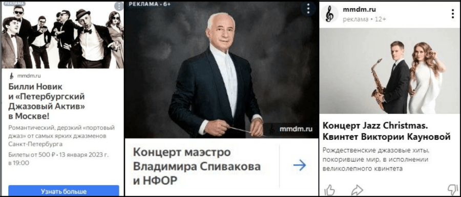 За период с 28 сентября по 20 декабря 2022 года нужно было запустить рекламу 15 концертов из афиши ММДМ.