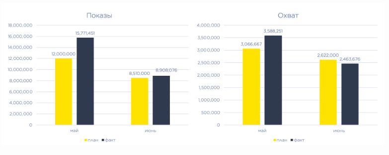 KPI по показам и охватам был выполнен на 128 и 118% соответственно