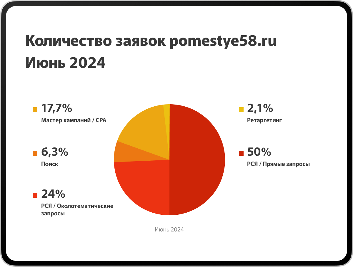 За июнь 2024 года нам удалось достичь поставленной цели и обеспечить стабильный поток заявок для застройщика «Поместье 58»: