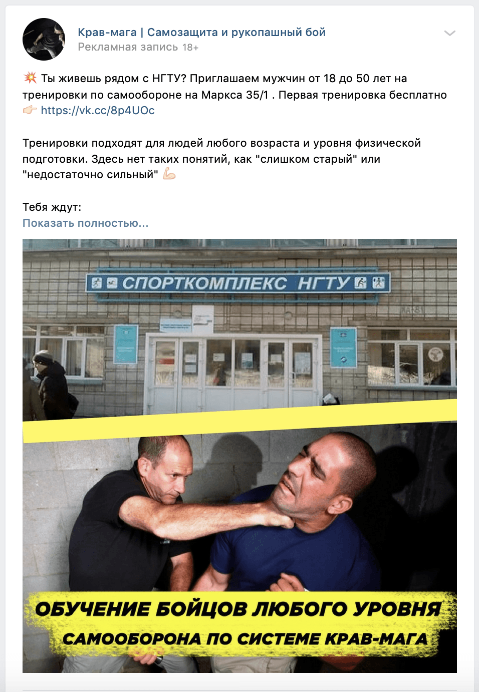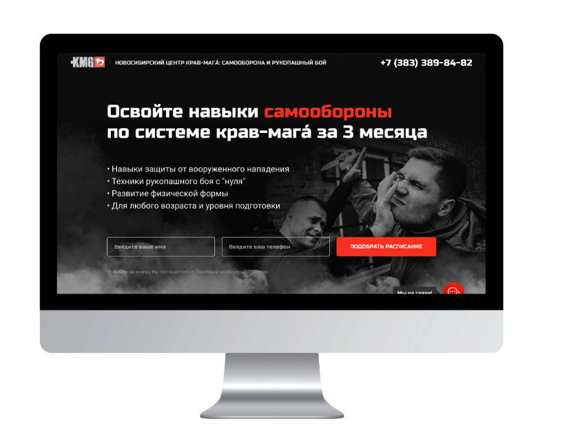 Для ее привлечения создали специальные рекламные объявления и страницы, которые предлагают занятия крав-мага в качестве альтернативы, стимулируя интерес потенциальных клиентов и прогревая их до записи на пробную тренировку.