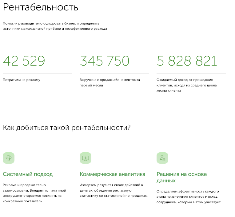 Такой подход позволяет увеличить эффективность сайта, при этом получая ценные маркетинговые данные, которые позже дают нам понять, что именно становится поводом для взаимодействия с нами в большинстве случаев, исходя из этого корректируя сайт.