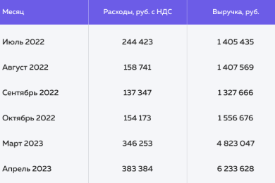 В июле мы сравнили результативность разных типов кампаний и отключили менее эффективные. С того момента основной и стабильный доход мы получаем с товарных кампаний — вышли на то, что каждый месяц выручка превышает расход примерно в 10 раз.