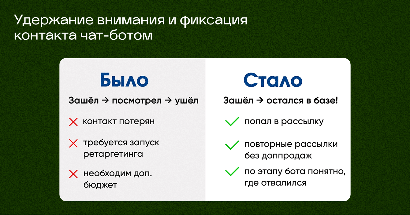 Чат-бот стал «прослойкой», которая удерживает внимание до момента принятия решения.