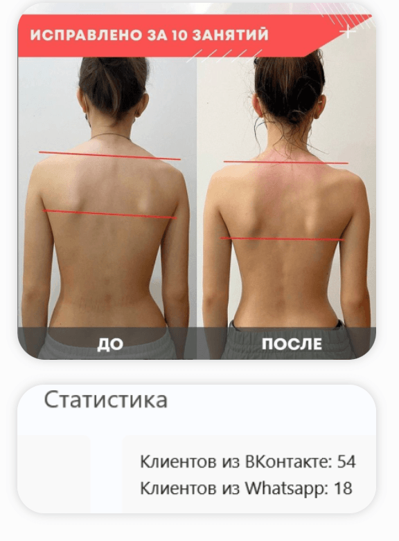 2) создание лендинга – конверсионной посадочной страницы для записи на пробное занятие в клинике