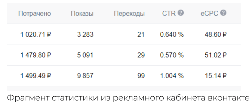Фрагмент статистики из рекламного кабинета ВКонтакте