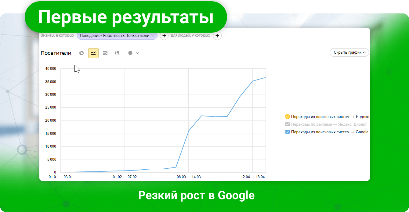 Однако, как показывает данный кейс, хорошо проработанный с точки зрения SEO сайт уже после запуска может привлекать трафик независимо от количества страниц.