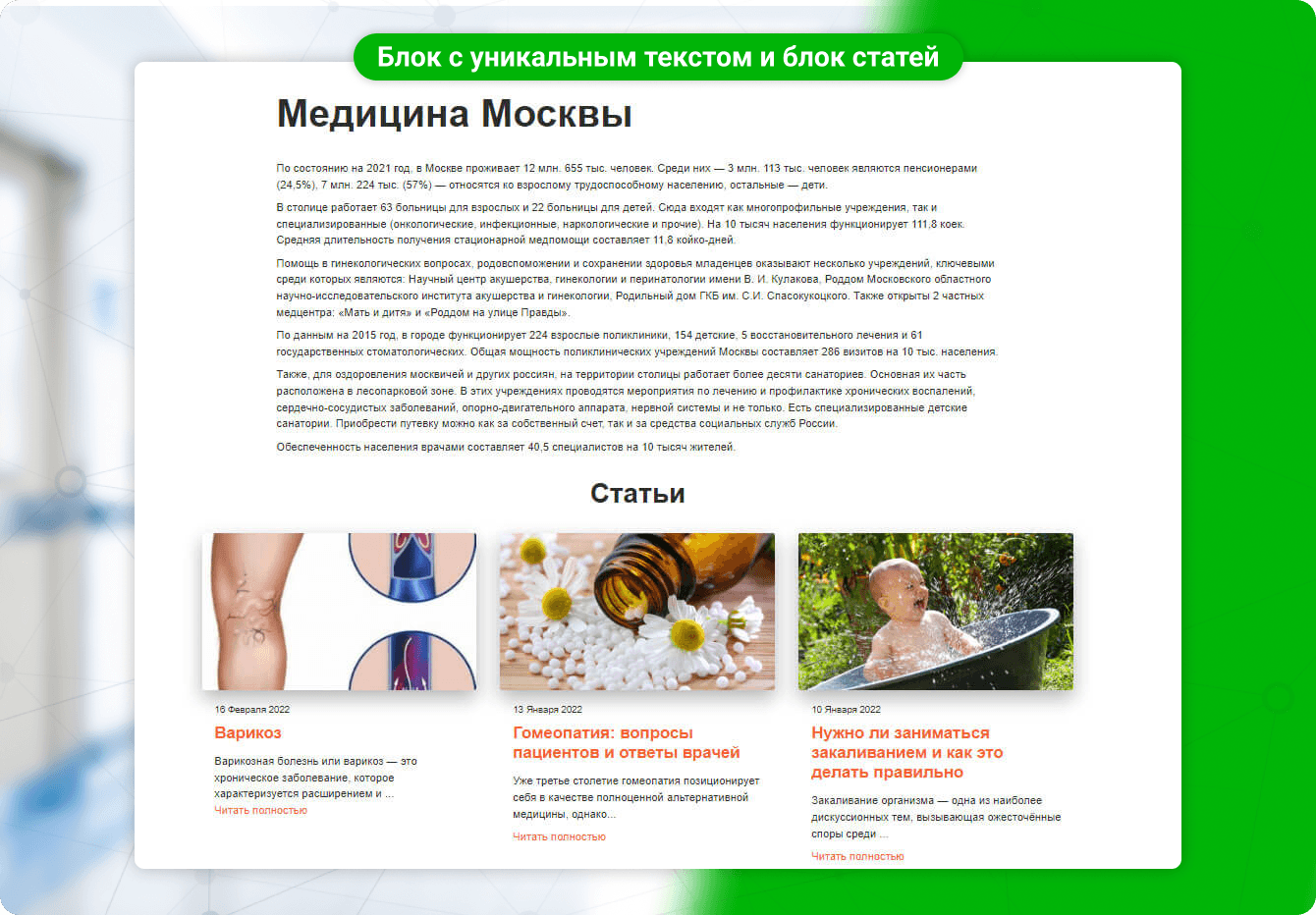 На этом же этапе было решено доработать главные страницы городов, дополнив их уникальными SEO-текстами.