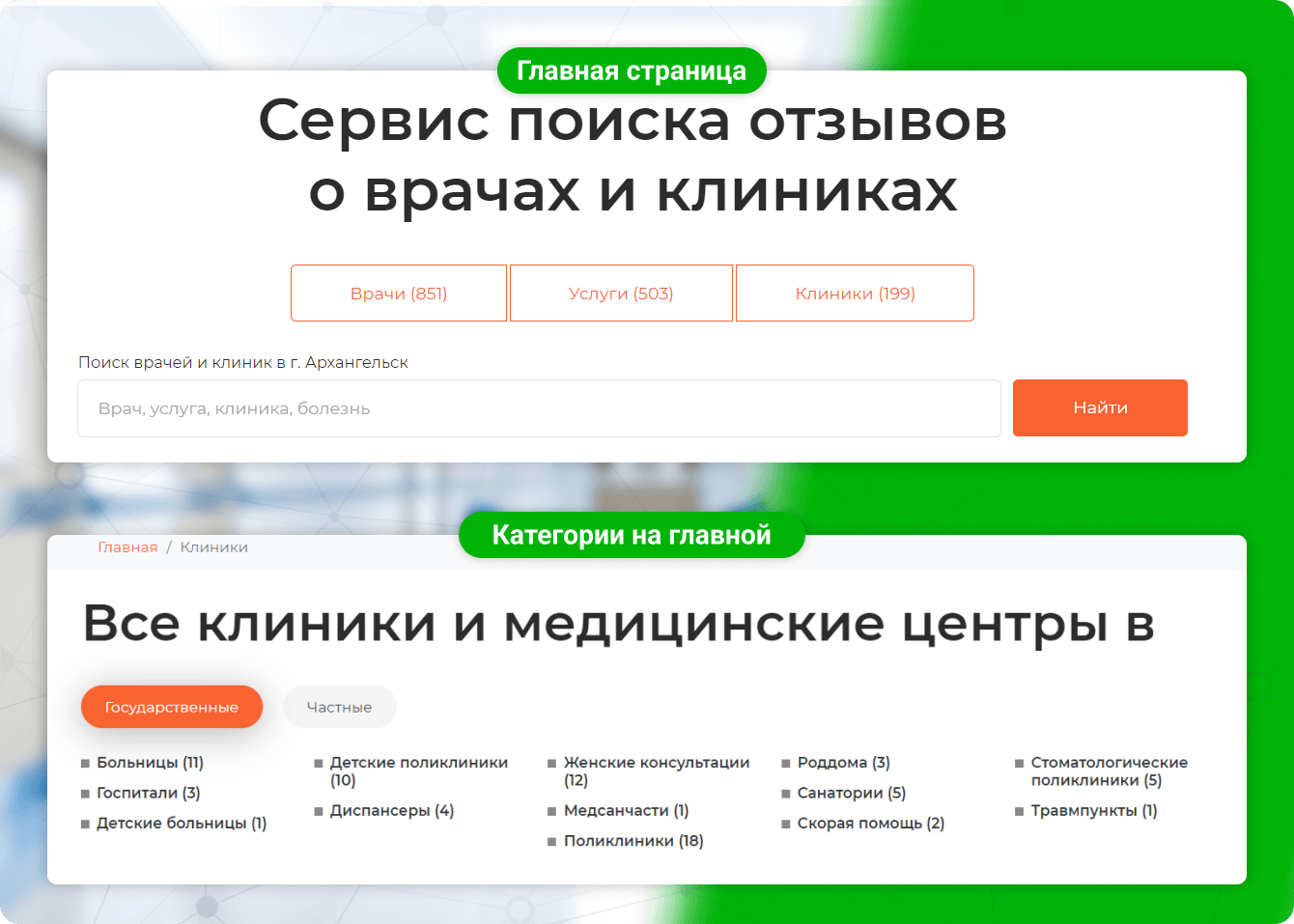 — Добавили превью клиник и врачей в каталогах.