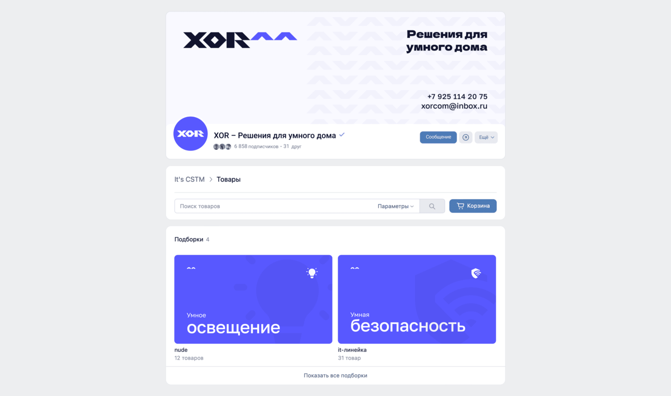 Далее приступили к оформлению ВК. Было очевидно, что нужны ава, шапка, оформление карточек товаров и категорий.
