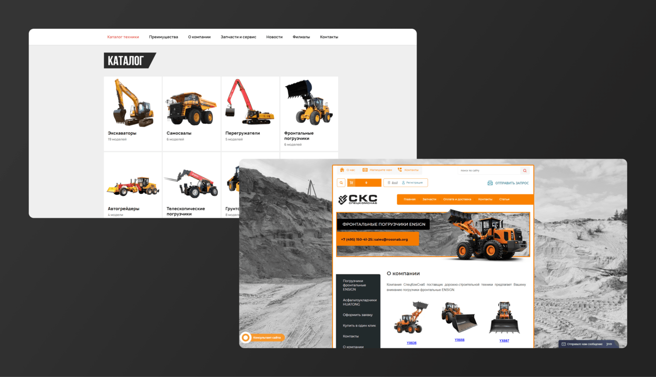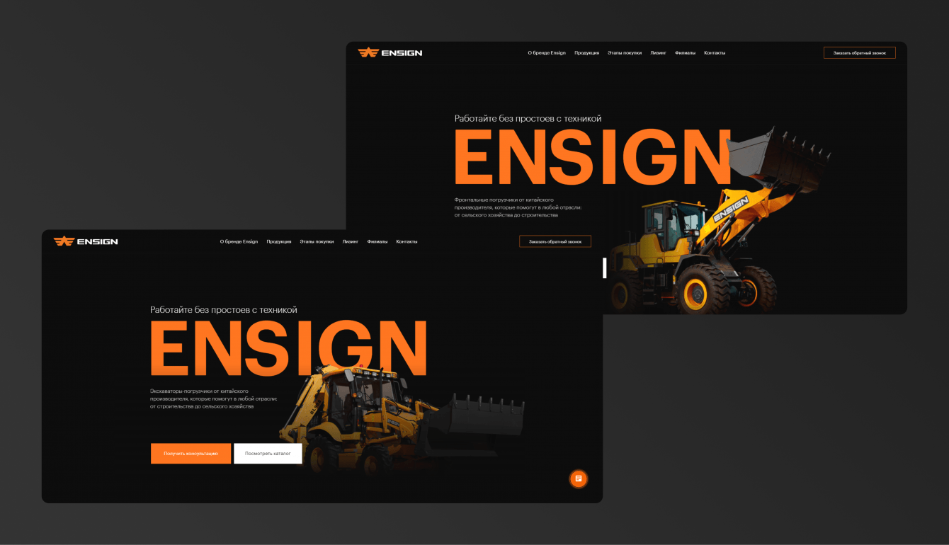 Заказчик — компания «Строительная Техника». Им понадобились 2 лендинга в экспресс-формате для продвижения продукции от бренда Ensign. Один — про погрузчики, другой — про экскаваторы.