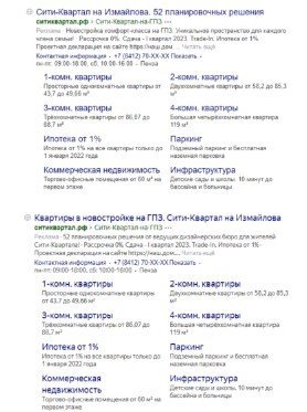 Следующим этапом идет разработка самих рекламных кампаний. Для этого проекта были разработаны кампании: Поиск, РСЯ, Баннер на Поиске, Графические объявления и Ретаргетинг. При первом запуске в объявлениях акцент конечно же был сделан на старт продаж. Далее рекламные объявления изменялись в зависимости от актуальных акций застройщика.