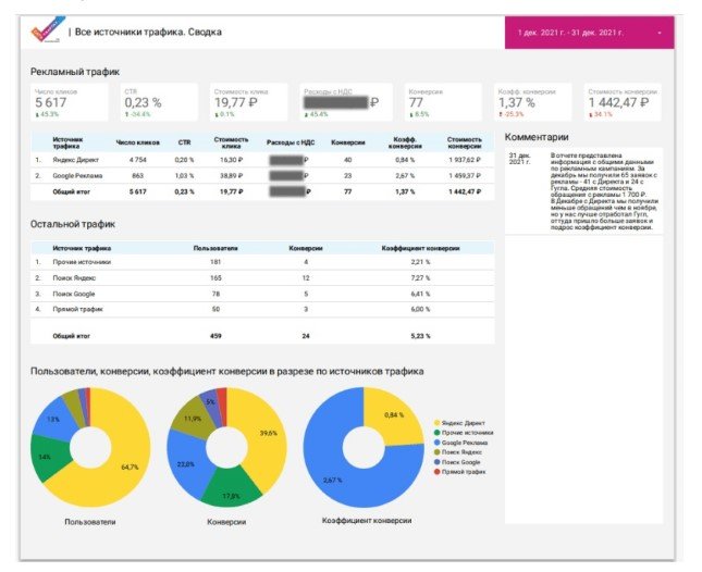 Также чтобы собрать и визуализировать все данные по рекламе в одном месте, автоматизировать систему отчетности по проекту мы разработали отчет в Google Data Studio.