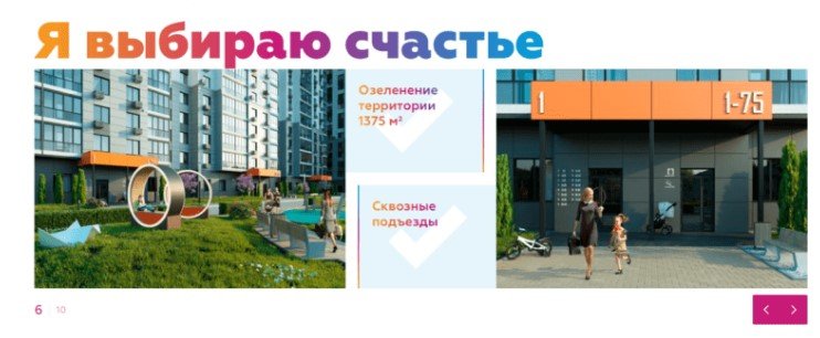Слоган Сити-Квартала на Измайлова – «Я выбираю счастье». Поэтому при разработке сайта акцент был сделан на удобствах, которые получают будущие жители нового ЖК. Также для пользователей на сайте разработан подробный блок со всеми вариантами планировок и можно подобрать наиболее подходящую.