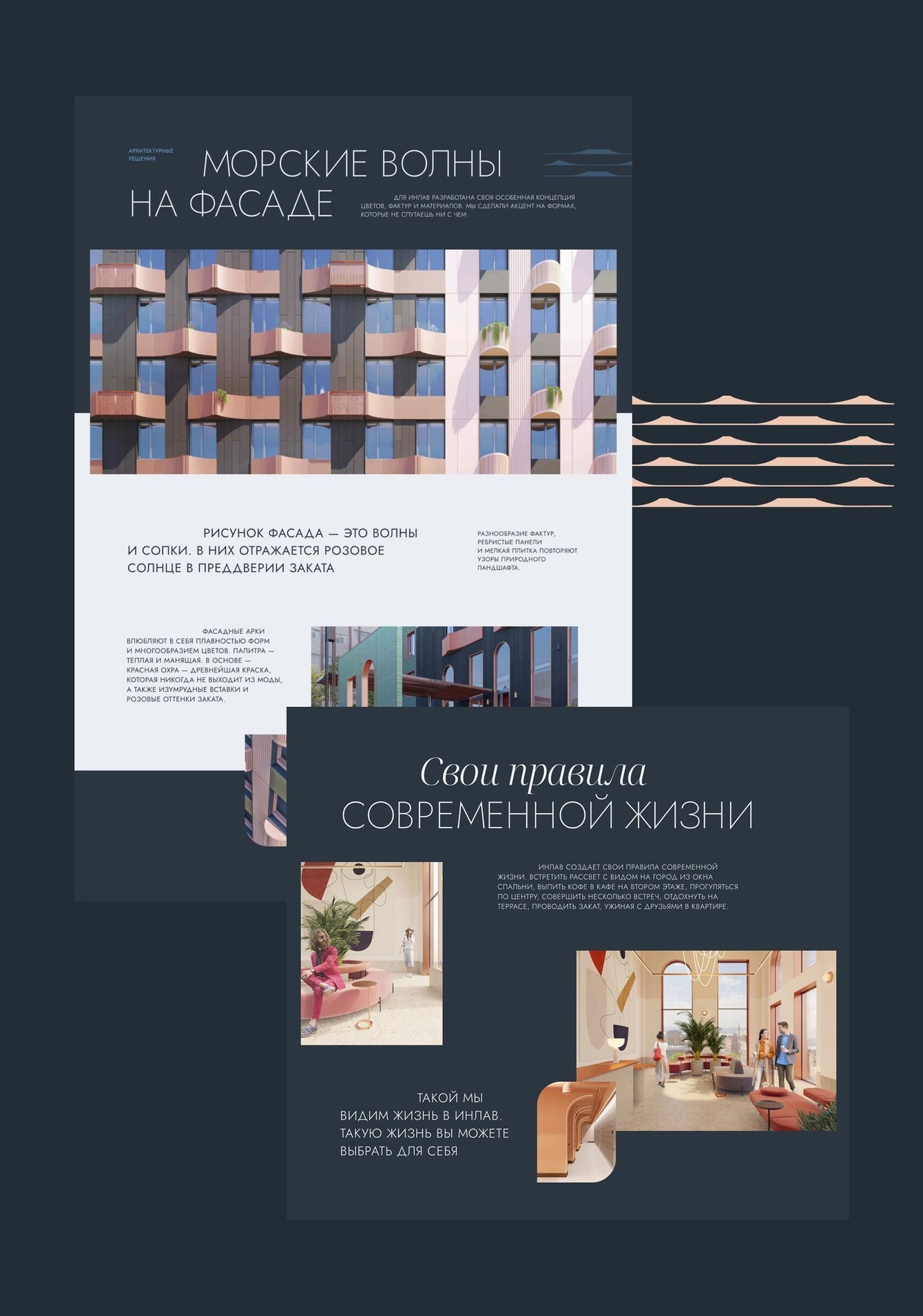 Заказчик пришёл с очень интересным референсом. Показал хороший пример западной компании по брендингу ЖК. Мы понимали сложности, но не стали бояться реализовать проект. Решили быть интересными и смелыми.