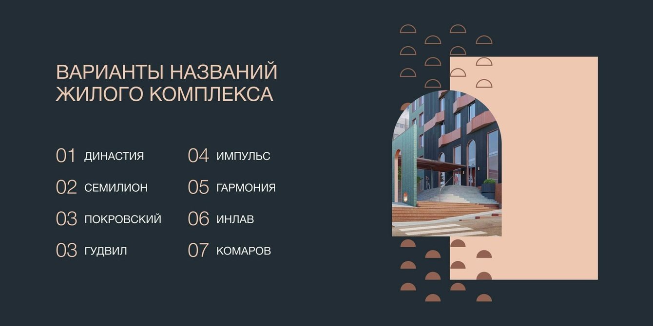 Перед началом всех работ команда специалистов Двиги внимательно изучили все новостройки города, проанализировали их имена. Такой анализ позволил понять, какие имена встречаются чаще, а какими можно удивить и привлечь. Копнули глубже и проанализировали то, как коррелируется название и цена на квартиру. Все это дало нам ясную картину о том, в каком направлении стоит думать.
