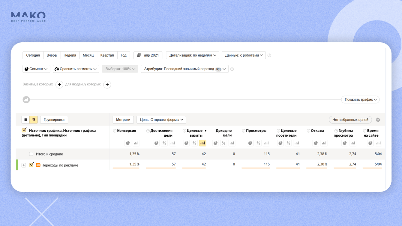 На этом скрине из Яндекс Метрики видно, что только 1,35% пользователей оставляли заявки