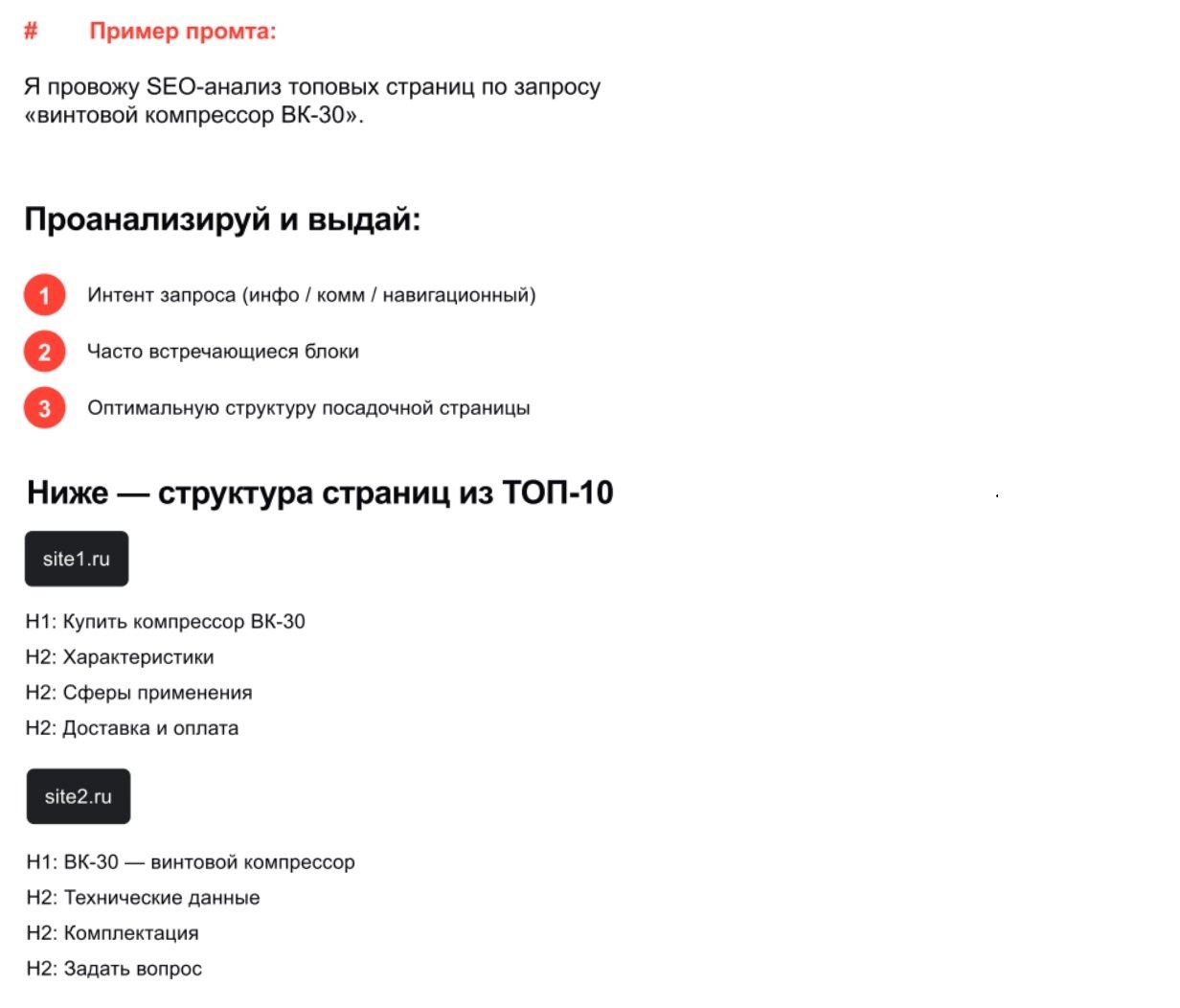 Пример промта. Структура сайтов-конкурентов также собирается с помощью ИИ: