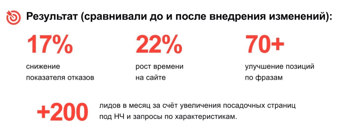 ✔️ регулярную доработку структуры — от новых фильтров до создания дополнительных региональных страниц.