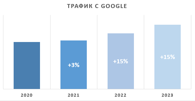 При этом трафик с Гугла был стабилен и показывал плавный рост.
