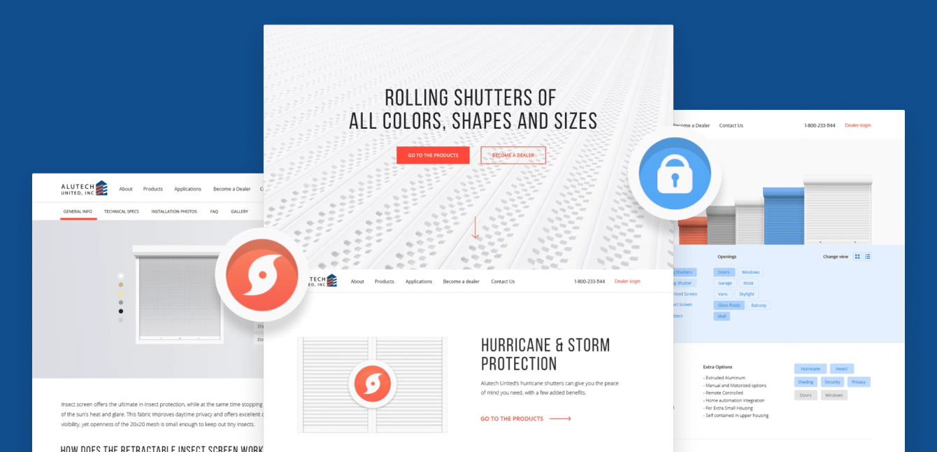 Alutech United Inc. — американский филиал немецкой компании Alutech, производящей рольставни, секционные ворота и шлагбаумы. В США, где ветер разрушительной силы стал нормой, особое распространение получила модификация рольставен, защищающая окна от ураганов и штормов. У филиала 500 торговых представителей в 36 штатах. Мы познакомились с клиентом в 2012 году.
