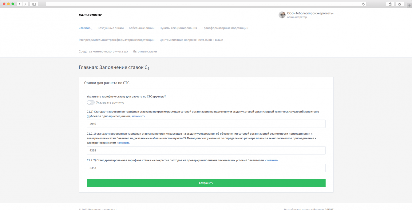 При разработке мы попытались учесть то, что в разных регионах РФ могут быть разные методики расчета стоимости технологического присоединения, а также разные тарифные сетки. В результате мы, по сути, стремились сделать универсальный продукт, который бы соответствовал требованиям всех ТСО России.