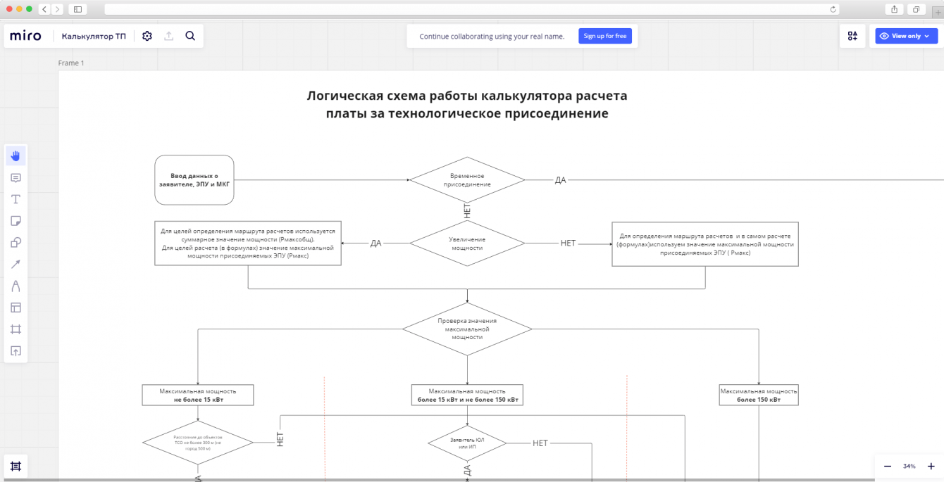 Техническое задание получилось большим и емким, с огромным количеством формул и переменных. Чтобы не запутаться, в Miro пришлось накидать отдельную интеллектуальную карту бизнес-процессов.