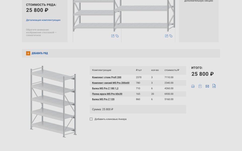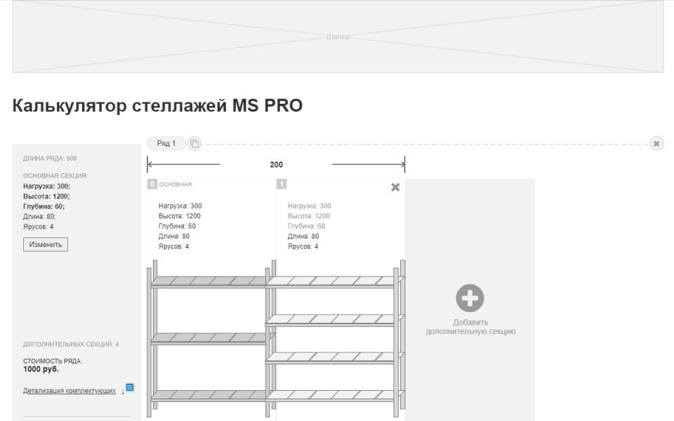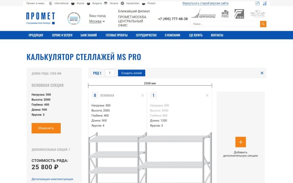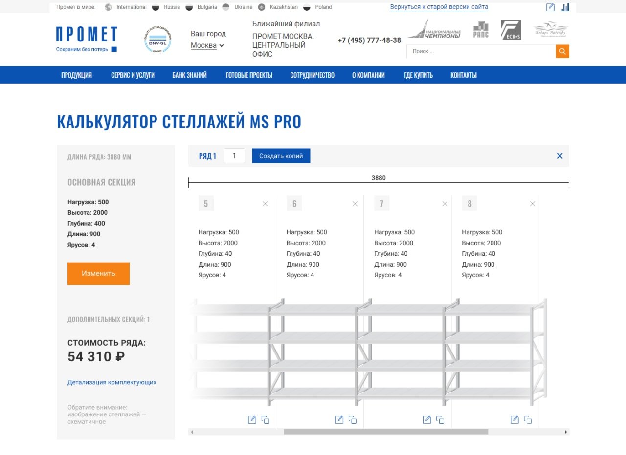 Требовалось разработать калькулятор стеллажей серии MS Pro, производящихся группой компаний ПРОМЕТ.