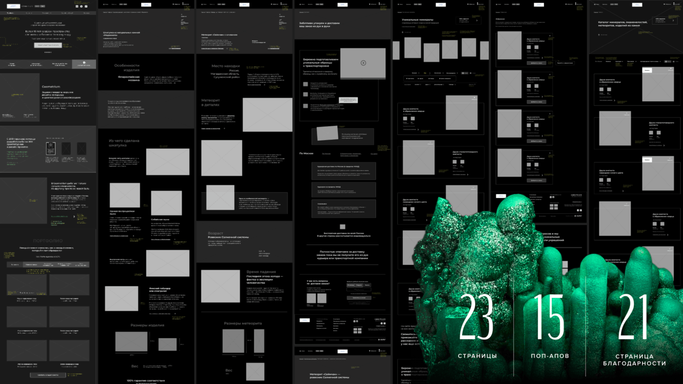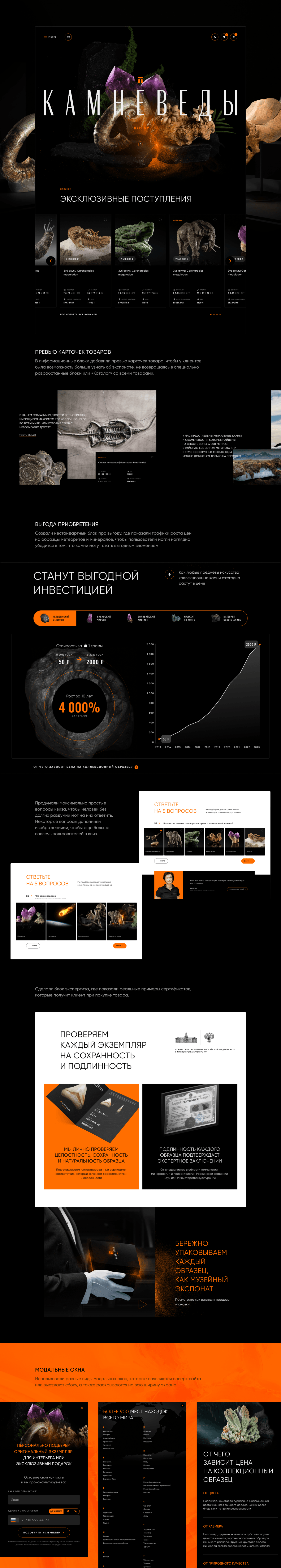 У собственника компании был запрос — создать многостраничный сайт, где будут продаваться премиальные товары — уникальные минералы, метеориты, окаменелости и изделия из камня. Это совершенно новое ответвление бренда, нацеленное на другую целевую аудиторию.