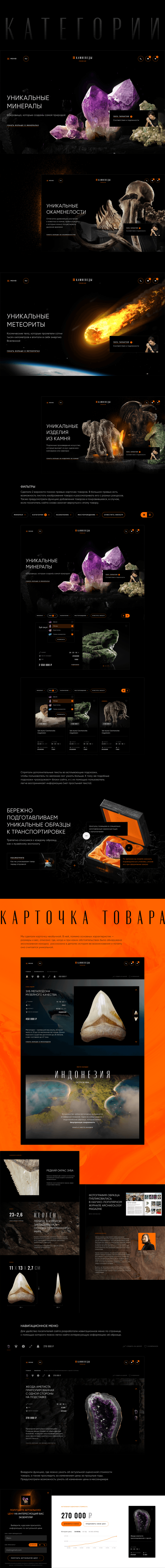 В результате у нас родилась концепция создать не просто интернет-магазин, а своего рода музей, где собраны уникальные экспонаты: минералы, метеориты, окаменелости и изделия из камня. Пользователи сайта могли бы погрузиться в удивительный мир древностей и предметов искусства, рассматривая каждый экземпляр.
