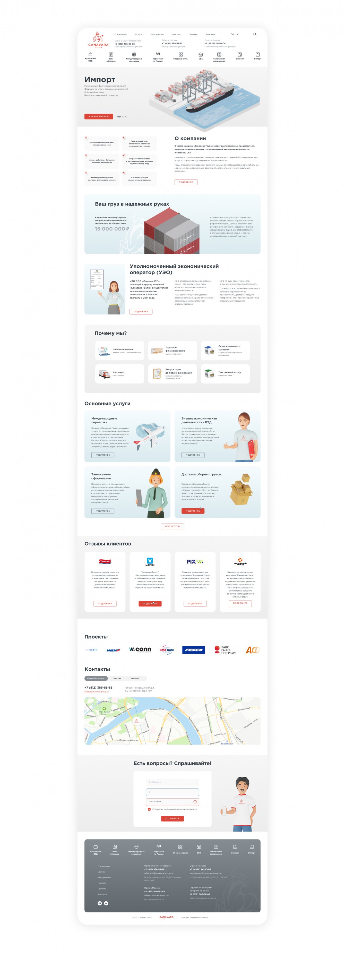 «Канавара Групп» оказывает заинтересованным участникам ВЭД полный комплекс услуг по обработке грузов разного вида сложности.У современной компании должен быть современный сайт, поэтому было принято решение провести редизайн сайта, сделать его более читабельным и приятным. После обсуждения были разработаны прототипы сайта основных уникальных страниц. Также основательно была переработана структура сайта и содержимое главной страницы.