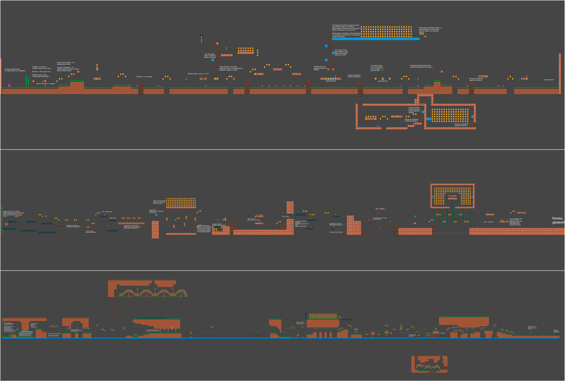 - Сбор монет и бонусов (из блоков, после уничтожения врагов)