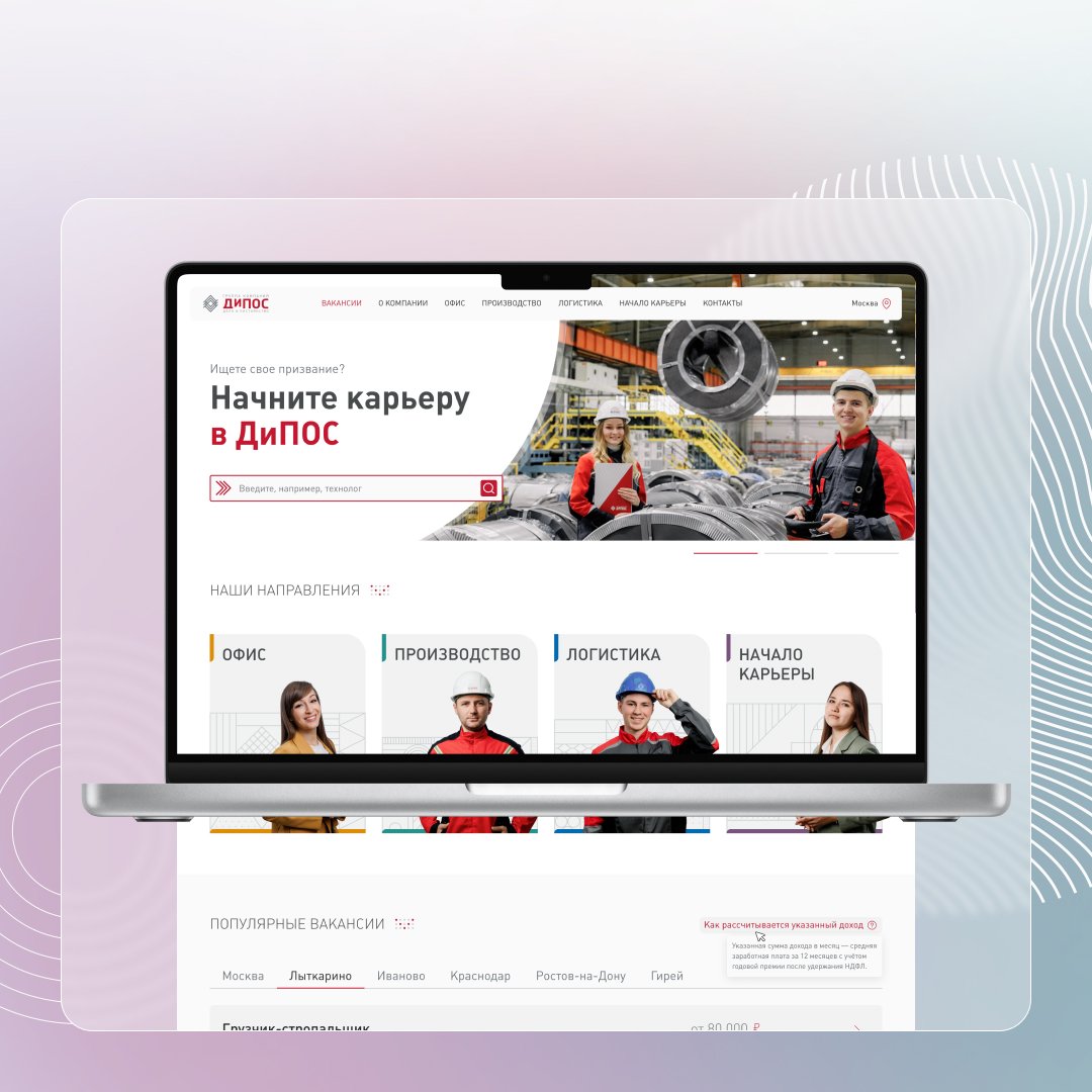 "Работая над созданием карьерного сайта rabota.dipos.ru, мы искали подрядчика, который сможет не просто «собрать сайт», а глубоко понять наши задачи, ценности компании и особенности коммуникации с кандидатами. Команда INOSTUDIO полностью оправдала ожидания и показала себя настоящими экспертами. Отдельно хочется отметить системный подход к проекту: чёткое погружение в аналитику, грамотное проектирование пользовательских сценариев и бережную работу с брендом работодателя. Коллеги из «Иностудио» предлагали решения, которые помогли сделать продукт не только визуально приятным, но и действительно удобным и эффективным для соискателей. Работать с INOSTUDIO было легко и комфортно: менеджер всегда находился и по‑прежнему остаётся на связи, ответы на наши вопросы и предложения были аргументированы, поэтому у нас сложилось понимание, что наш проект — в надёжных руках. Для нас это партнёр, к которому хочется возвращаться с новыми задачами.