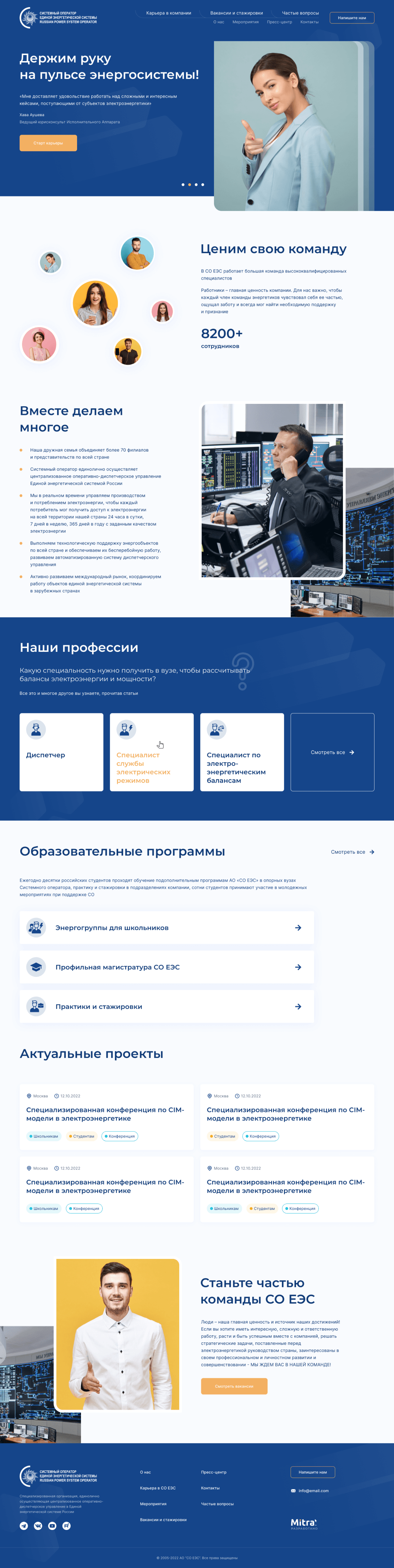 Масштабная компания с филиалами по всей стране не только координатор энергоснабжения, но и крупнейший работодатель. Желание реализовать молодежную политику и пополнить кадровый состав молодыми специалистами привели организацию за новым сайтом.