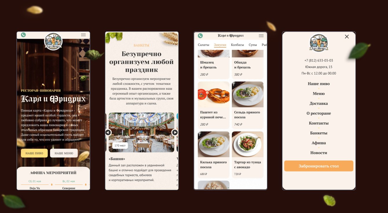 Обновить устаревший сайт, создать современное решение с акцентом на атмосферу ресторана и удобство для постоянных посетителей.