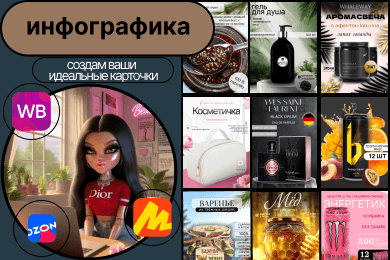 - Разработка инфографики для карточек товаров на маркетплейсах с учетом Вашей ниши