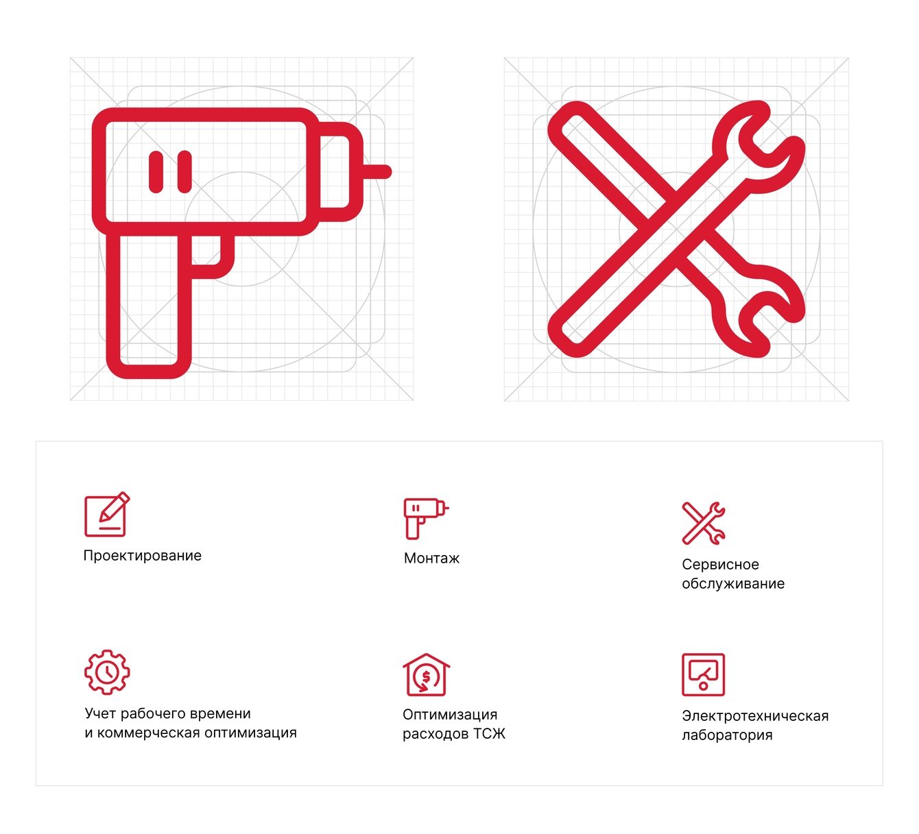 На сайт и для коммуникаций бренда был разработан сет иконок при использовании фирменных графических приемов.