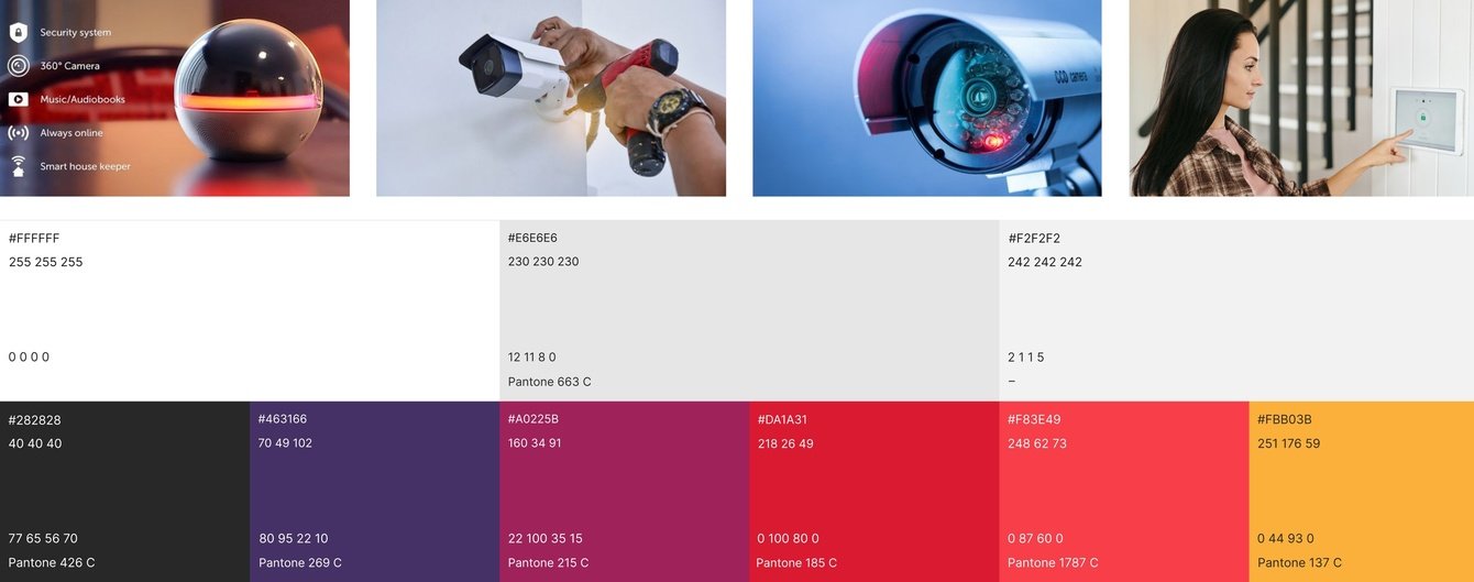 Для палитры используем яркую, каскадную цветовую схему. Оставили красный цвет главным оттенком палитры, но добавили дополнительные акценты. Метафора комплексности услуг/работ/решений и современная отсылка к истории компании.