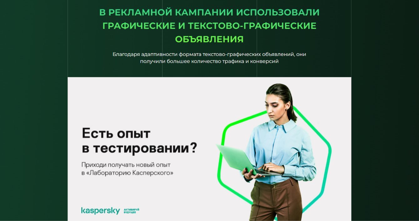 Мы помогаем «Лаборатории Касперского» доносить до ЦА ключевые месседжи о работе в компании и за счет этого привлекать целевых лидов для отклика на открытые вакансии. Дело в том, что спрос на IT-специалистов уровня middle и выше превышает предложение — именно поэтому на job-сайтах редко увидишь «горящее» резюме продвинутого разработчика. Чтобы успешно привлекать сильных профессионалов в этой сфере, нужно быть на виду у ЦА и рассказывать о себе.