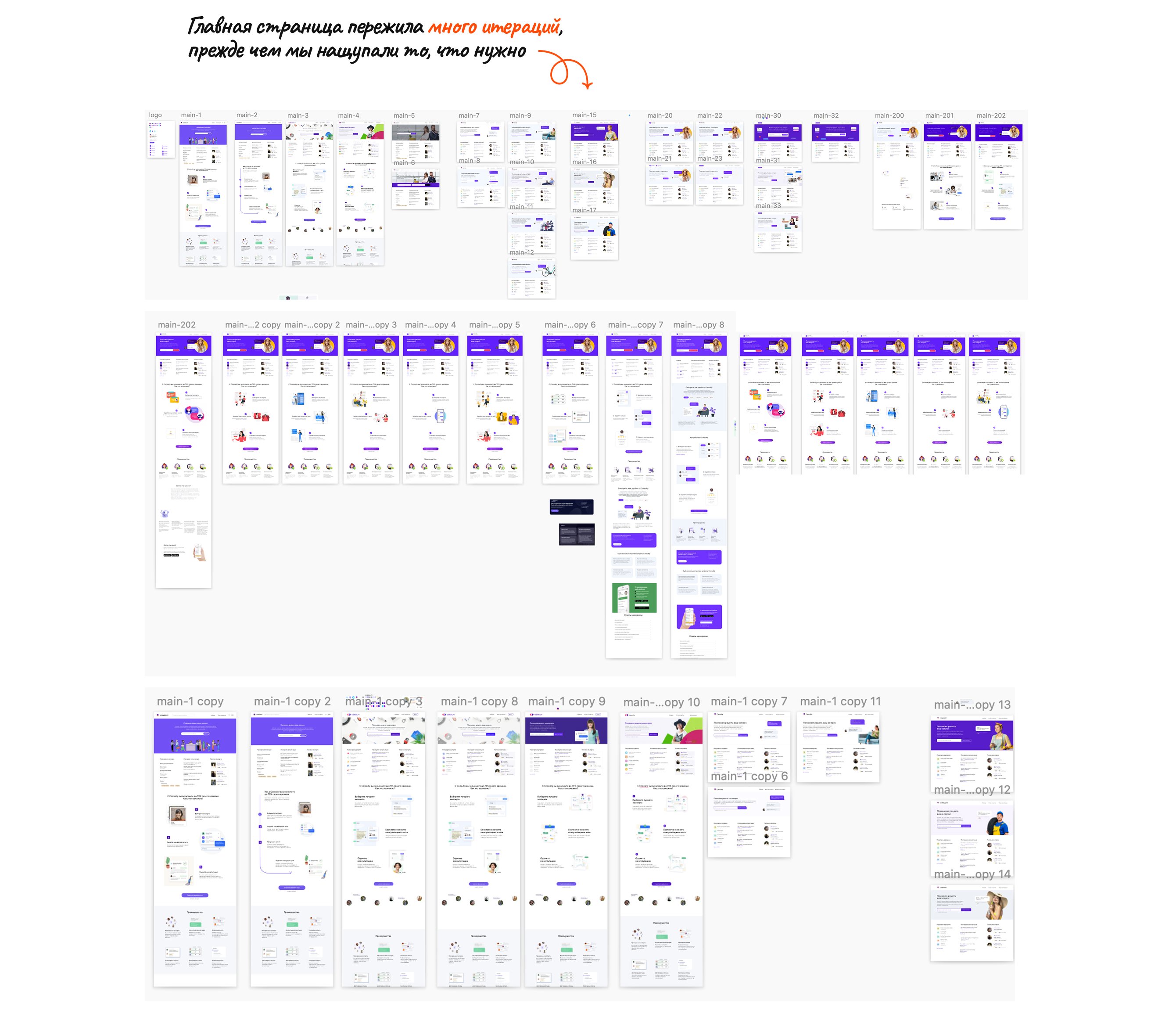А дальше был 71 прототип будущих страниц, 44 итерации переделок и около 30 вариантов логотипа.