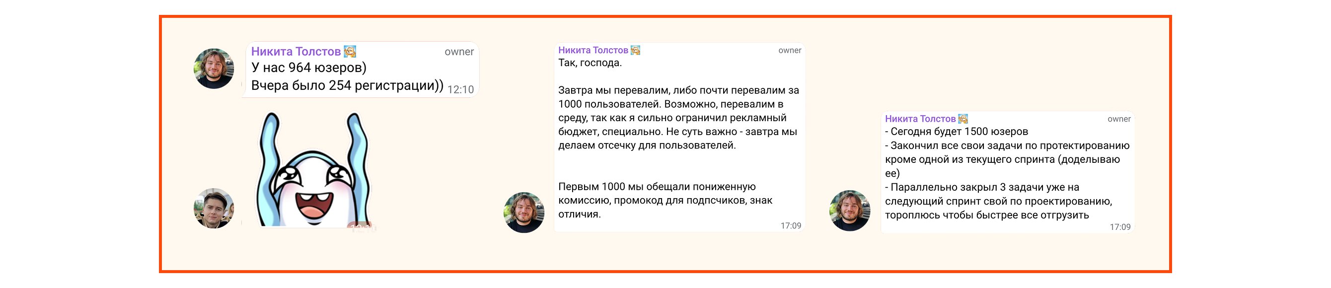 Чтобы его снять на нужном уровне, потребовалось 50+ итераций. В итоге все сыграло в плюс: и реальный профиль Никиты, который можно было проверить, и уровень подготовки ролика: текст, визуал, фон, искренность, попадание в мысли экспертов, цепляющее предложение. Взрывное число регистраций дал именно ролик с основателем сервиса.